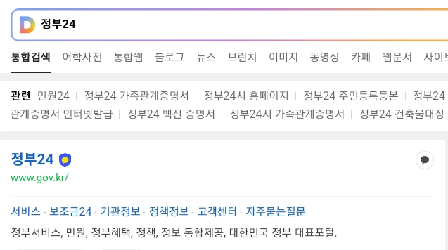 - 포털사이트에서 [정부24] 키워드 검색을 통해 사이트 검색