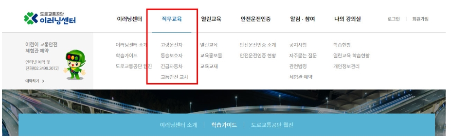 <도로교통공단 이러닝센터 홈페이지 접속>