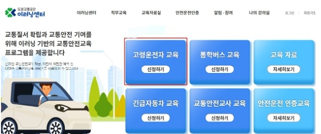 3) 홈페이지에  보시면 [고령운전자 교육 신청하기] 를 클릭합니다.