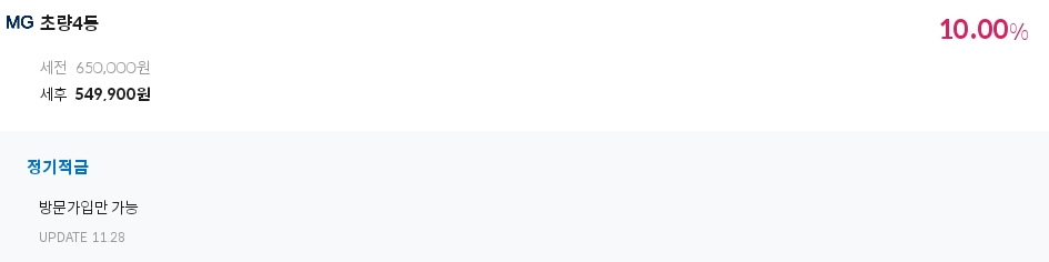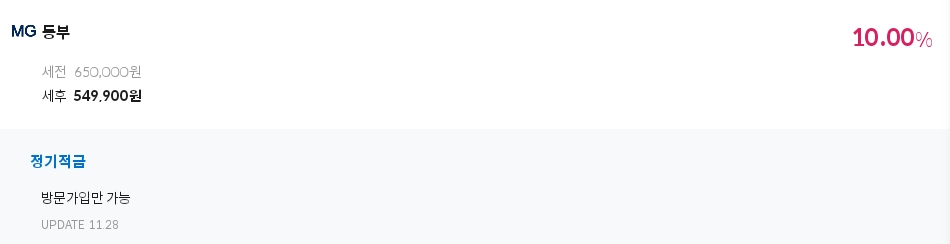 - 월 100만원 12개월 정기적금 시 -> 세전 650,000원 -> 세후 549,900원
