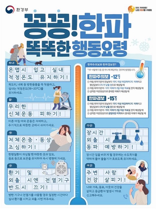 - 아침 최저기온이 영하 15도 이하이고 2일 이상 지속될 것으로 예상될 때