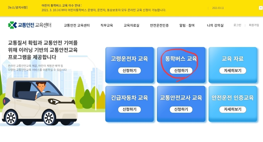 3) 메인화면에서 [통학버스 교육] 신청하기를 선택합니다.