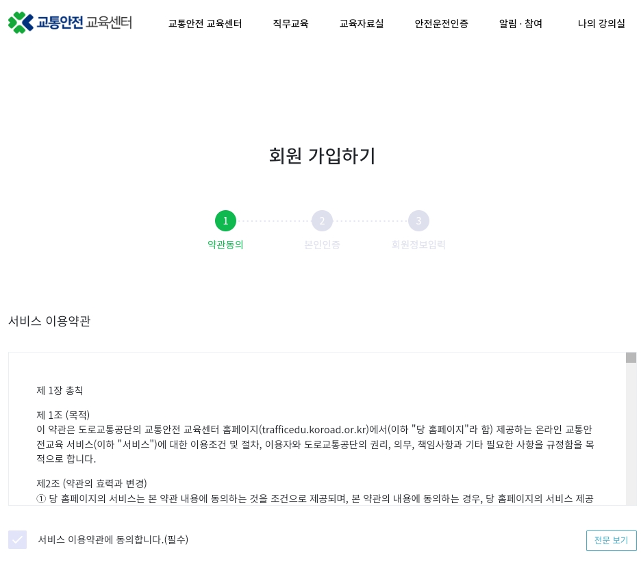 도로교통공단은 도로교통법 제120조에 의거 교통질서를 확립하고 교통안전에 기여하기 위하여 이러닝 기반의 교통안전 교육프로그램을 제공하고 있습니다.