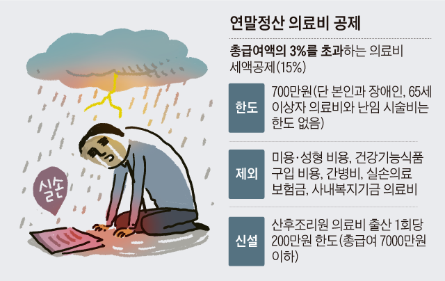 A. 총급여 7천만원 이하인 경우 의료비 공제 대상이 됩니다. 산후조리원비용 등은 200만원 금액을 한도로 가능합니다.