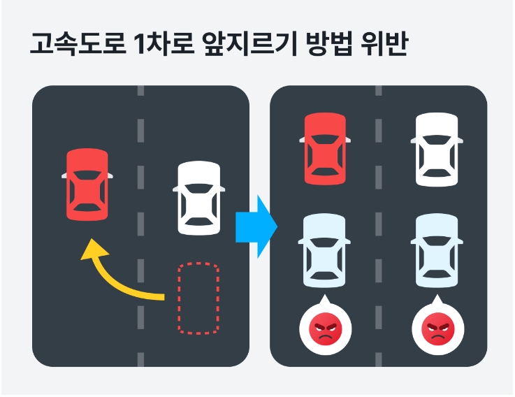 자세하게 살펴보면 위 사진과 같이 [고속도로에서 앞지르기 후 본래 차선으로 돌아가지 않고 정속 주행할 경우 과태료가 부과된다]는 내용입니다.