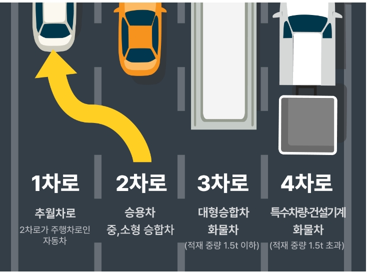 고속도로 1차로가 추월 차선이라는 사실은 모두 알고 계실겁니다. 하지만 간혹 그걸 잊어버리고 1차로(추월차선)에서 정속 주행하는 차량들 때매 고속도로 막힘 현상이 일어나면서 원활한 통행이 방해될 때가 있습니다. (버스 전용 차로가 있다면 2차로)