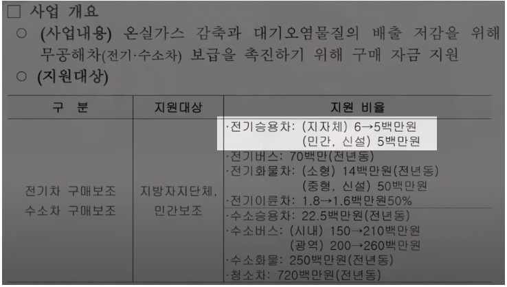 - 소형 전기차의 경우 400만원 -> 300만원
