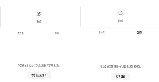5) 오픈 프로필을 만들어서 클릭하게 되면 [포스트]와 [채팅] 이 있습니다. [포스트]는 직접 글을 작성할 수 있고 블로그나 이미 작성된 글을 가지고 와서 올릴 수 있으며 상대방이 내 프로필을 클릭했을 때 어떤 것을 하고 있는지 알려주는 용도로 사용합니다.