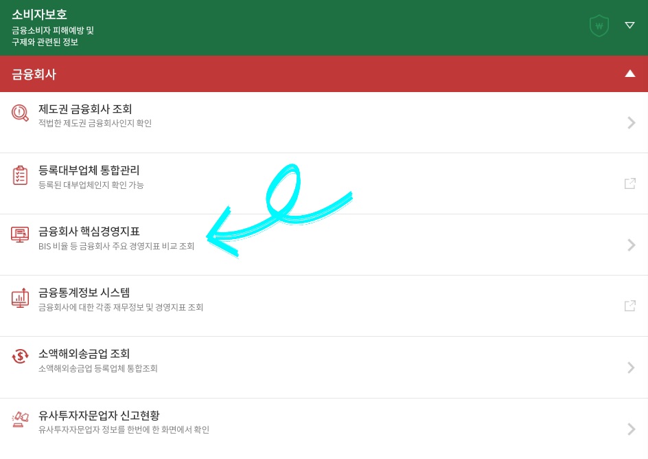 3) [금융회사 핵심경영지표]를 클릭합니다.