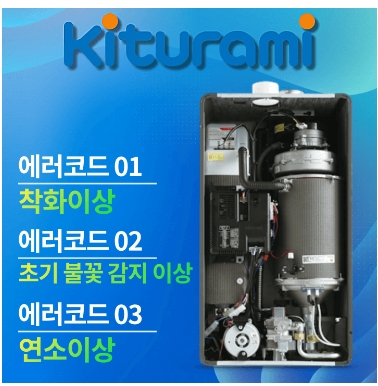 다만, 점화봉 또는 점화트랜스, 점화플러그, 연료 공급관 등의 손상이나 고장에 의해 착화이상이 발생할 수도 있습니다. 기본적인 점검 후에도 온도 조절기 표시창에 에러코드 01번이 계속해 표시되고 점화가 안된다면, 지역 대리점이나 A/S센터에 연락해 조치를 받는 것이 좋습니다.