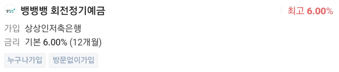 저축은행 정기예금 3위 - 뱅뱅뱅 회전정기예금 (상상인저축은행)