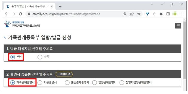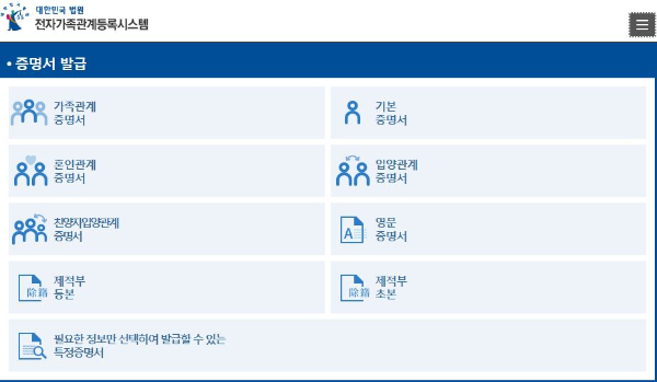 가족관계증명서 인터넷 발급 (전자가족관계등록시스템) 본문