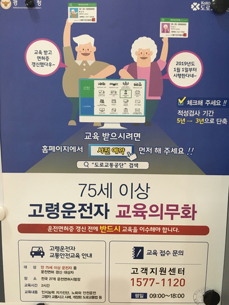 만65세 이상이 되면 도로 안전을 위해 운전면허 갱신을 하려면 고령운전자교통안전교육을 이수해야합니다. 또 만 75세 이상이 되면 이런 운전면허 갱신 요건등이 강화됩니다. 고령운전자 교통안전교육은 도로교통공단이러닝센터에서 시행하며 고령운전자에 필요한 인지기능점사를 교육하게 됩니다.