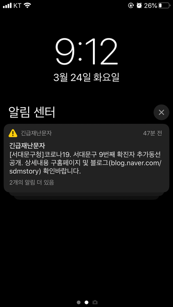 - 긴급재난문자 : 산불, 홍수, 태풍 등 대피가 필요한 상황이나 민방위 경계경보 발령 시 보내지며, 수신거부도 가능합니다. 다만 이건 거의 날아오지 않고 중요한 상황에만 날아오기 때문에 끄지 않는 것을 추천합니다.