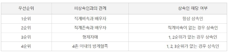• 1순위 직계비속과 2순위 직계존속의 차이점