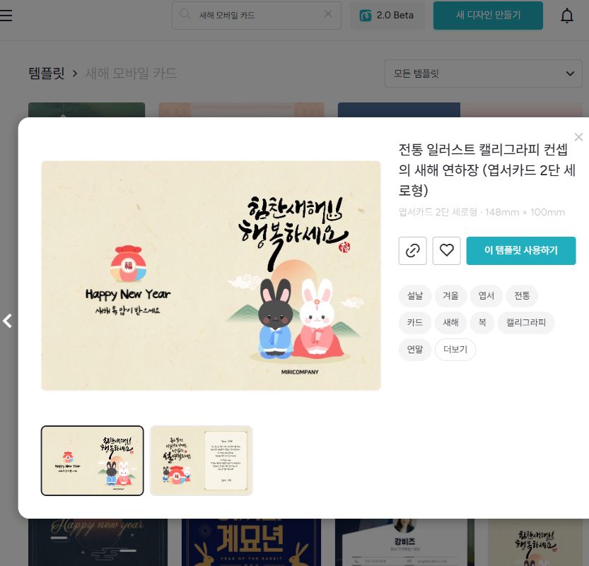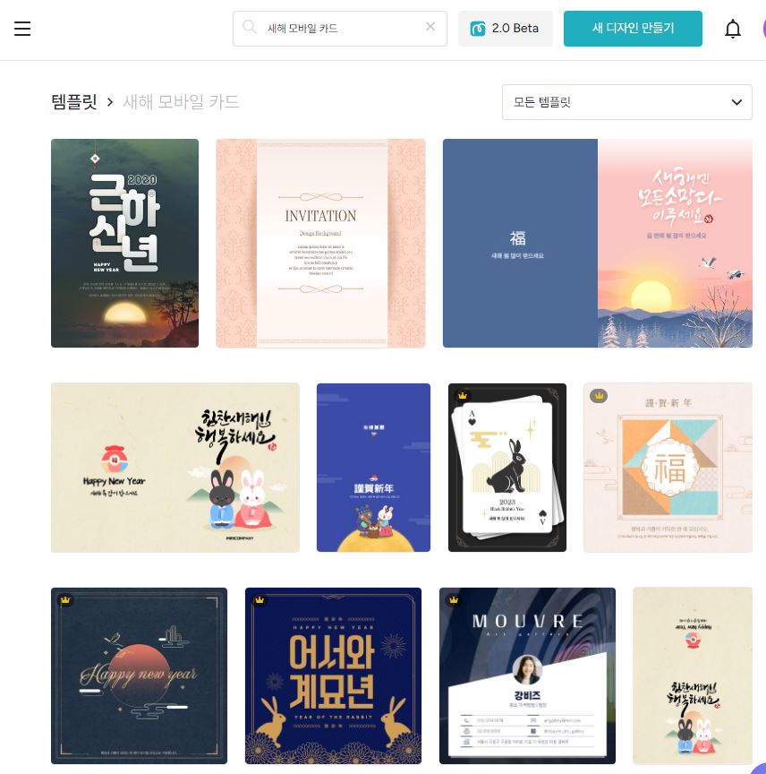 3) 템플릿에 들어가셔서 검색창에 [새해 모바일 카드]라고 검색하시면 2024년 갑진년의 모바일 카드들이 뜹니다.