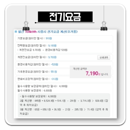 소비전력이 290W인 컴퓨터를 하루 12시간 사용할 경우 월간 소비량은 약 104 kWh로, 이를 주택용(저압) 전기요금으로 환산하면 약 7,190원이 됩니다.