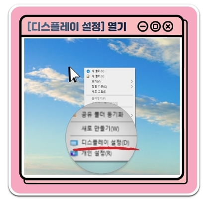 윈도우 바탕화면에 마우스를 이동한 후 오른쪽 마우스를 클릭하면 설정 팝업창이 표시됩니다. 컴퓨터 절전모드 설정 변경을 위해 항목 중 [디스플레이 설정] 메뉴를 클릭합니다.