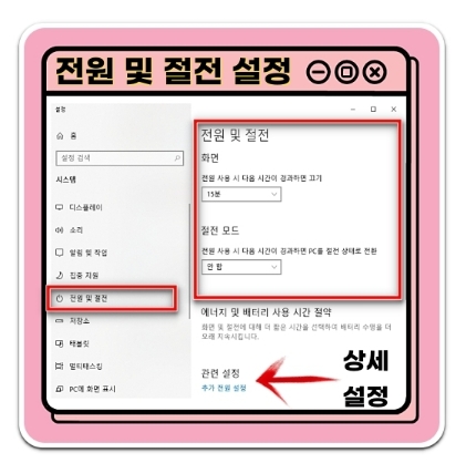 ② [전원 및 절전] 카테고리 선택