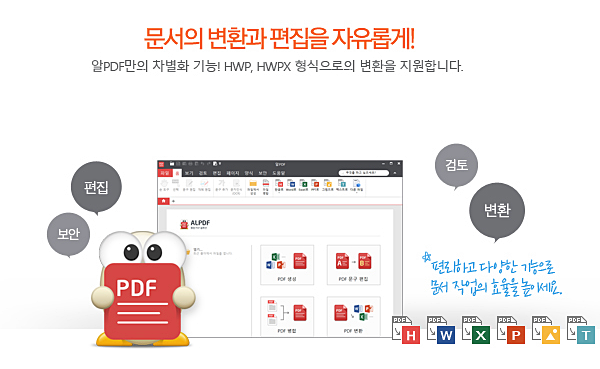 알PDF는 PDF를 다양한 포맷으로 변환할 수 있고, PDF 합치기, PDF 용량 줄이기, 수정 등 PDF를 자유롭게 편집할 수 있는 PDF 변환/편집 프로그램입니다.