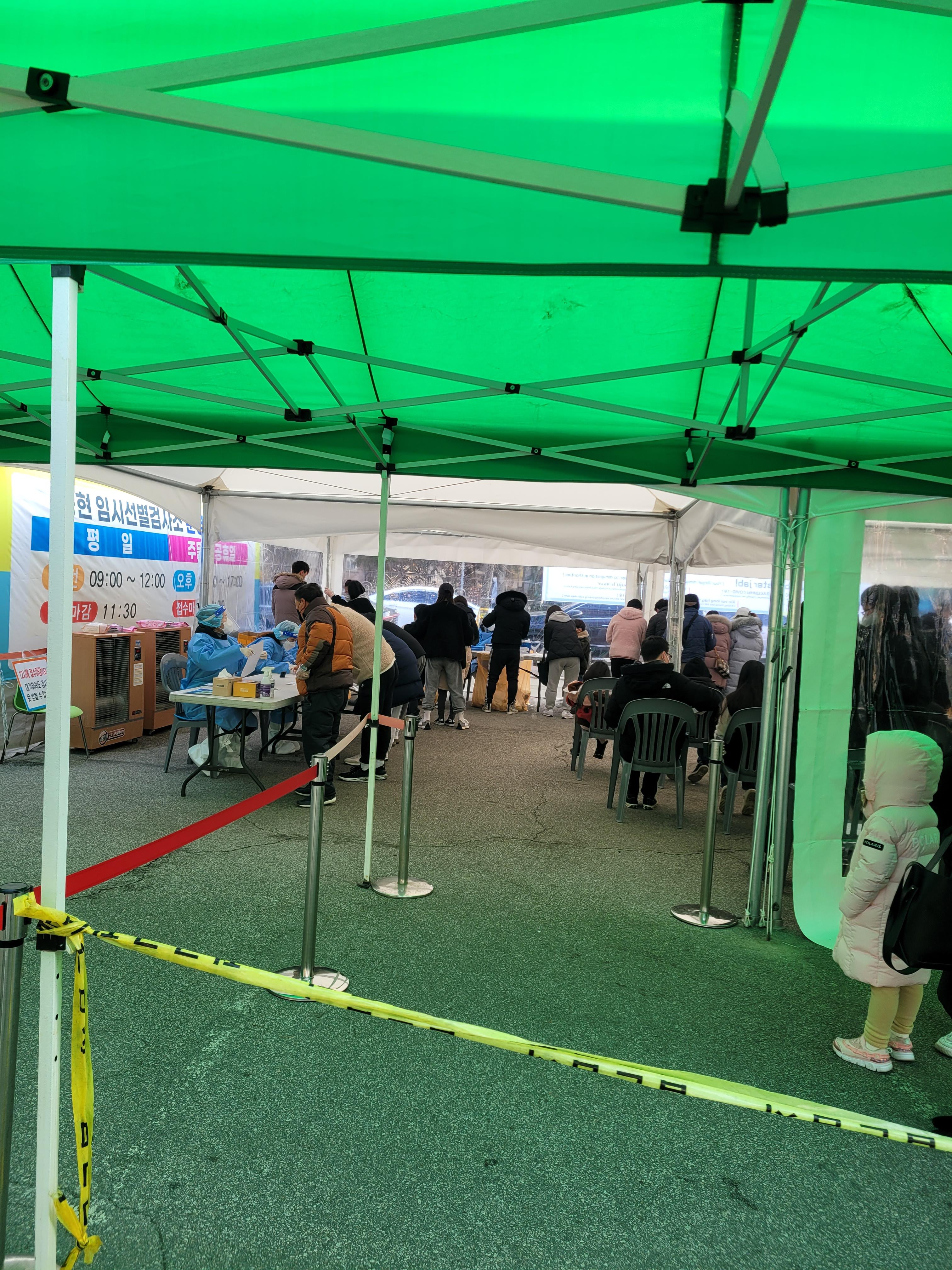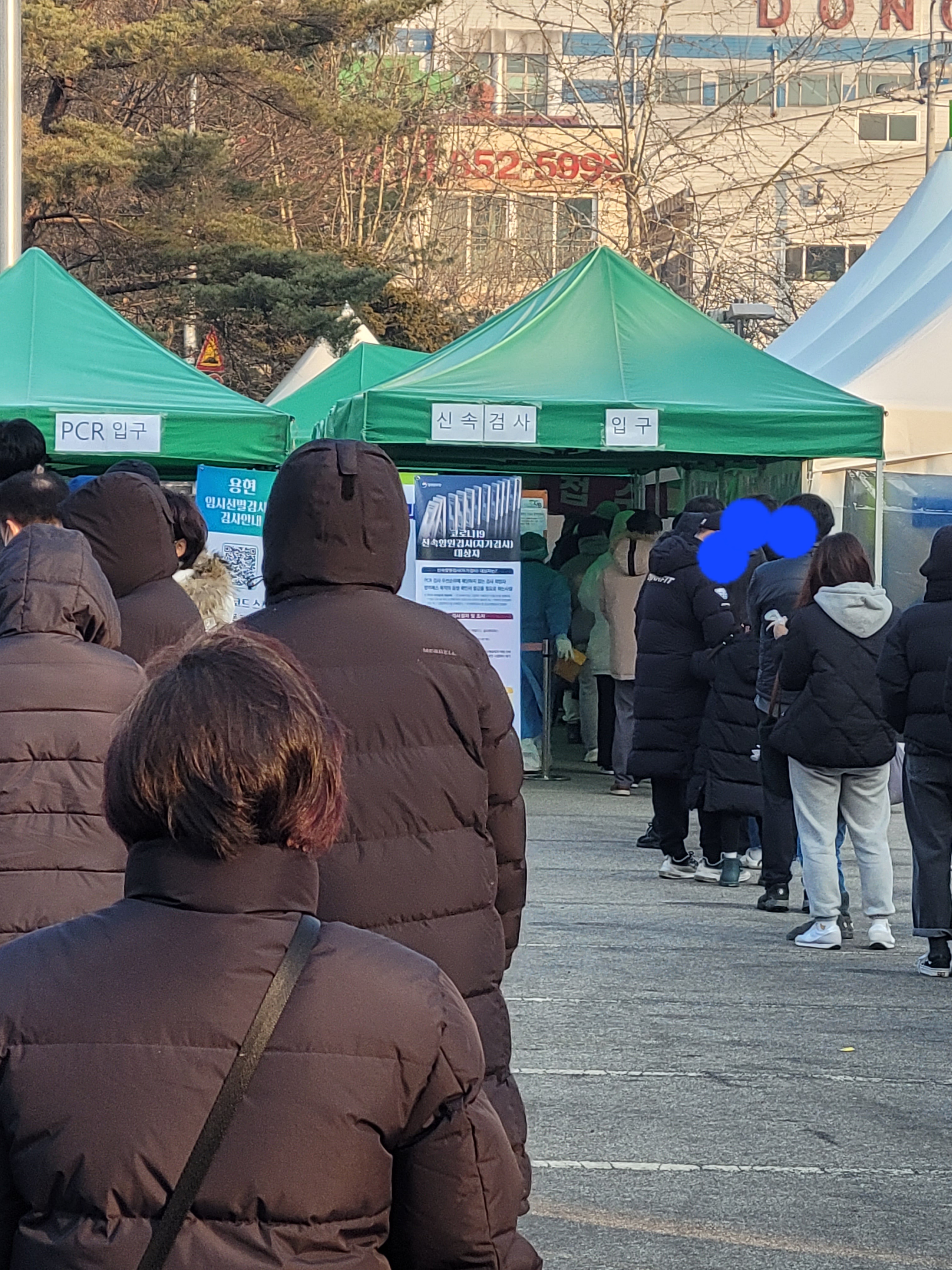용현동 임시 선별 진료소는 처음 오시면 헷갈리실 수 있는데 보시는 거와 같이 왼쪽은 PCR입구 오른쪽은 신속항원검사입니다. 아무래도 PCR은 대상자가 정해져 있기에 신속항원검사가 줄이 더 길었습니다.