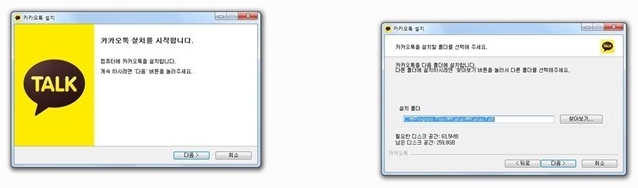 2.다운로드 한 카카오톡 파일을 클릭해서 설치를 시작합니다. 설치폴더는 수정하지 마시고 [다음]을 눌러주세요.