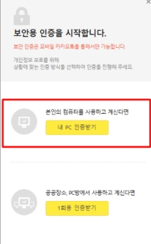 2.공공장소, PC방 등에서 1회용 인증받기로 로그인을 해야 하지만 회사나 집 등 내가 사용하는 기기에서는 매번 인증받기 귀찮기 때문에 [내 PC 인증받기]를 최초 한번만 인증받으시면 편하게 사용이 가능합니다.