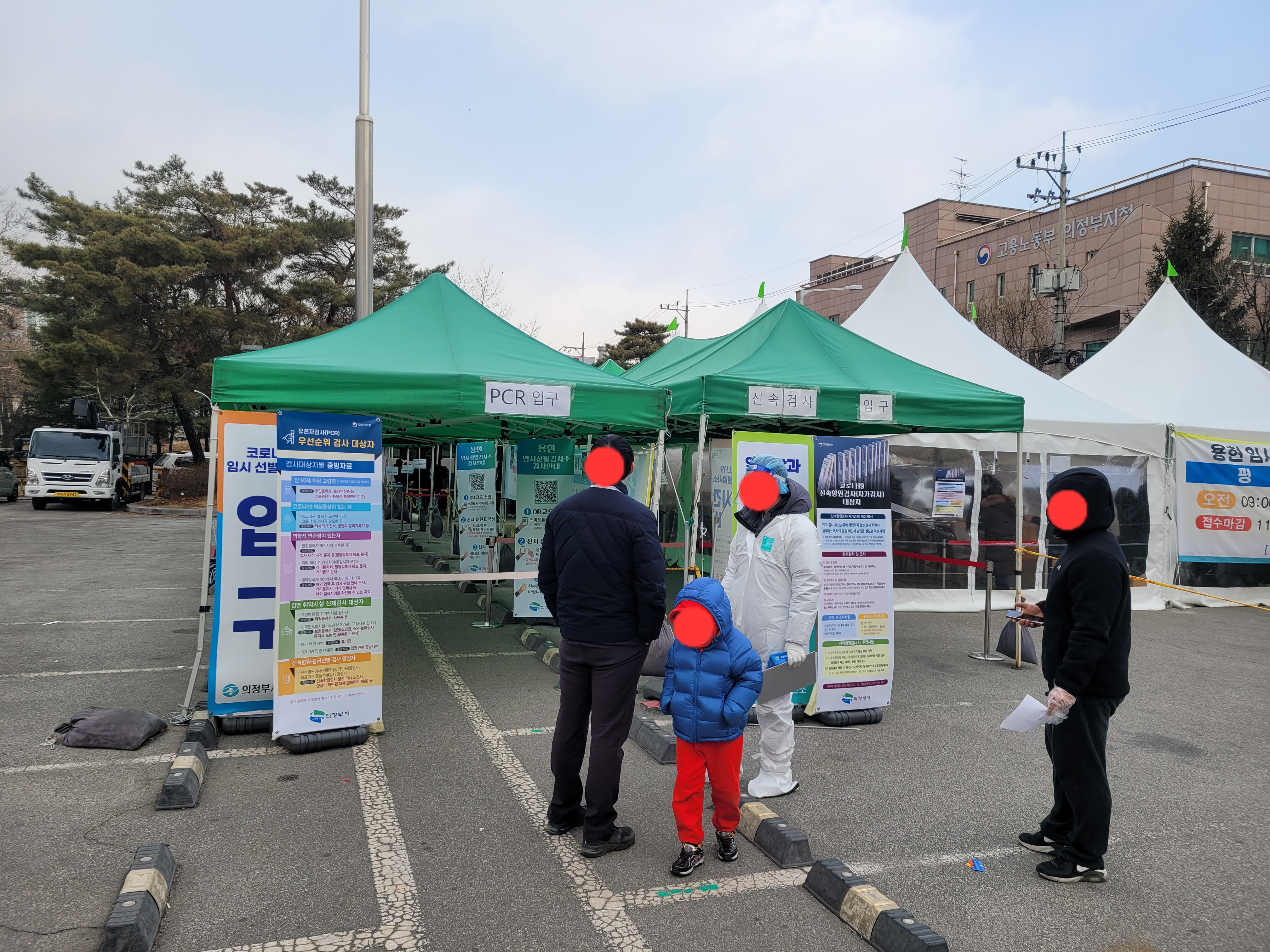 어린이집에서 막내아이와 같은반인 아이가 양성이 나와서 저희가족은 다 같이 신속항원검사를 받으러 용현동 임시선별진료소로 이동하였습니다. 정말 가슴이 떨리면서 검사를 했습니다.