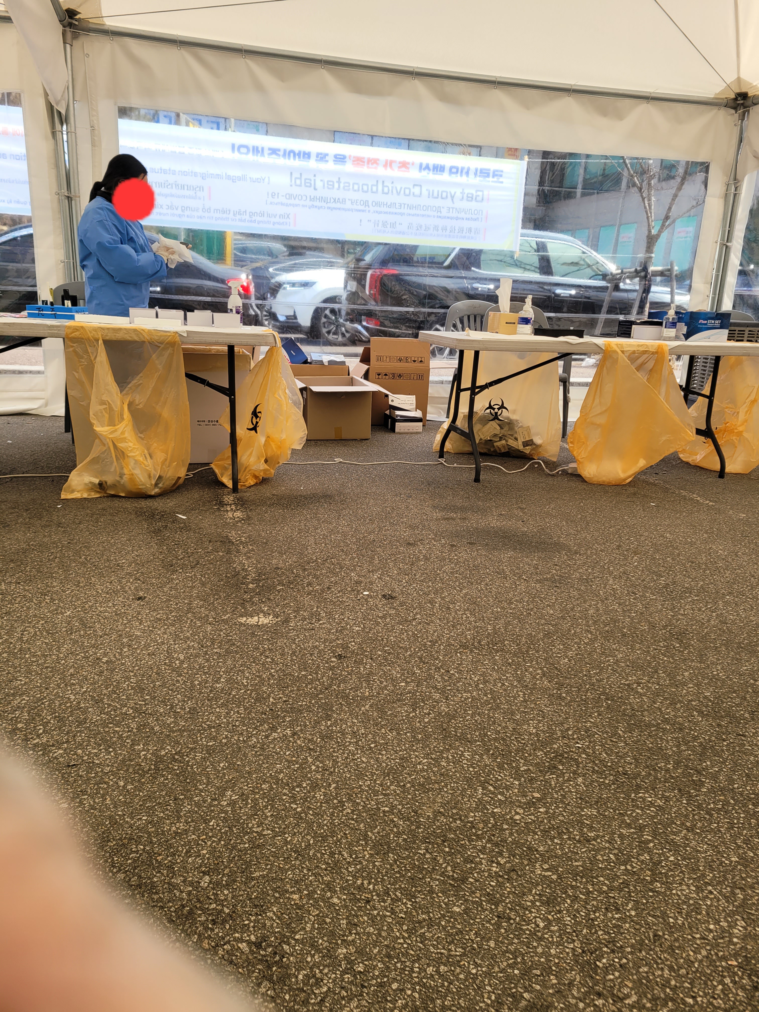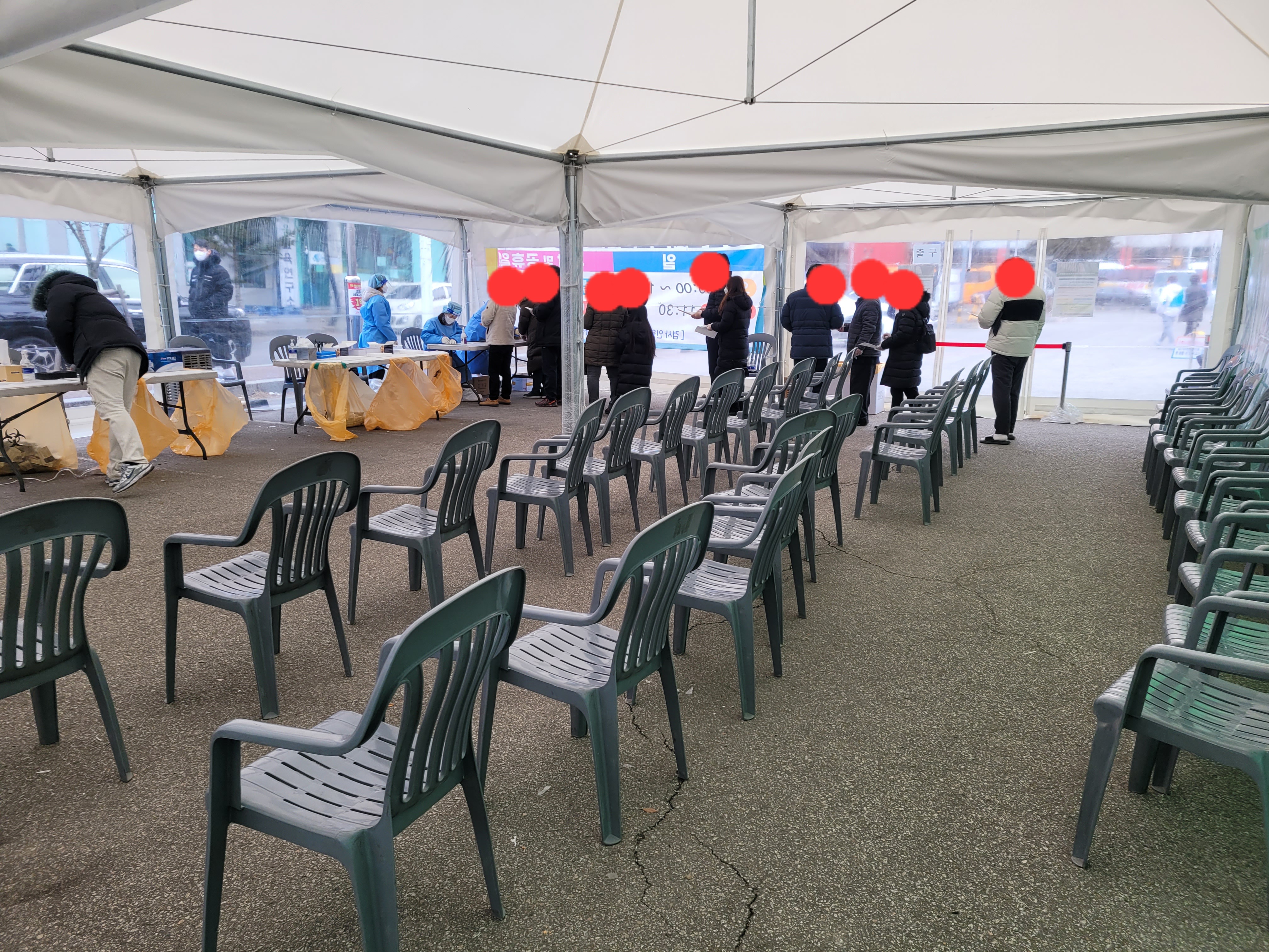 테이블에 도착해서 자가검사키트를 관계자분이 주시고 제가 직접 코에 넣고 검사를 실시한 후 의자에 앉아서 15분 대기하신 후 결과가 나오면 구석에 있는 관계자분에게 가서 검사결과를 보여주고 음성이면 [음성확인서 발급] 하실거냐고 물어봅니다. 아니라고 하면 그냥 나가시면 되고 양성이신 분은 관계자분 인솔 하에 바로 옆에 있는 PCR검사소로 이동해서 PCR을 받으십니다.