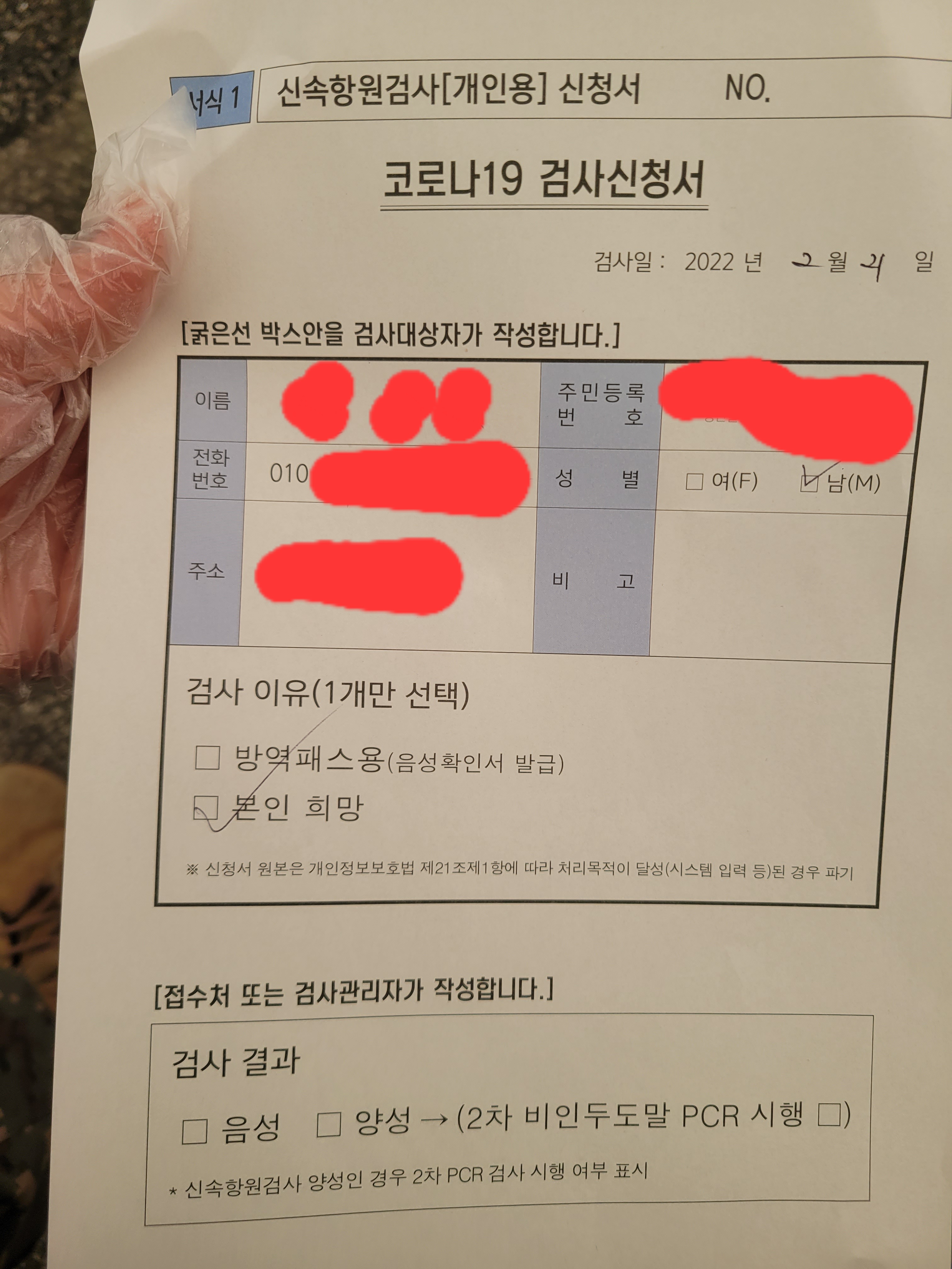 신속항원입구로 들어가시면 또 줄이 2개로 나눠져 있습니다. 왼쪽 줄을 서서 [코로나19 검사신청서]를 작성 하셔야 합니다. 이름, 주민번호, 전화번호, 성별, 주소, 검사이유를 체크 한 후 오른쪽에 보시면 [코로나19 검사신청서]를 들고 계신분들 뒤에 가서 줄을 다시 서면 됩니다.