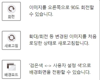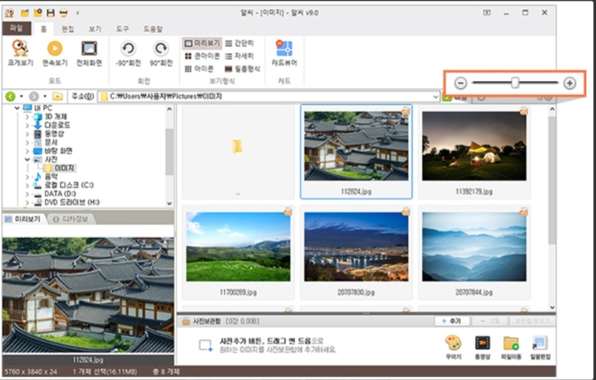 이미지를 크게 보거나 전체화면으로 볼 수 있으며 그림파일을 여러개 동시에 볼 수도 있습니다. 슬라이드 쇼를 이용하실수도 있으며 이미지를 부드럽게 보정하기, 사진 자동 회전, 배율, 압축파일에 대한 이미지 바로보기 등을 하실 수 있습니다.