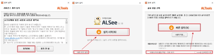 4.라이센스에 동의하기를 누르시고 [설치시작]을 눌러서 알씨를 설치하시기 바랍니다.