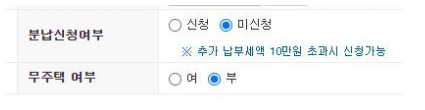 - 무주택 여부 선택란에 [부]를 체크한다면 주민등록등본 상에 있는 세대주와 세대원 중에 누군가는 주택이나 분양권을 소유하고 있다는 뜻입니다.
