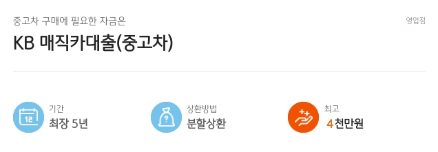 KB 국민은행 매직카대출 금리 한도 상환방법 (중고차)